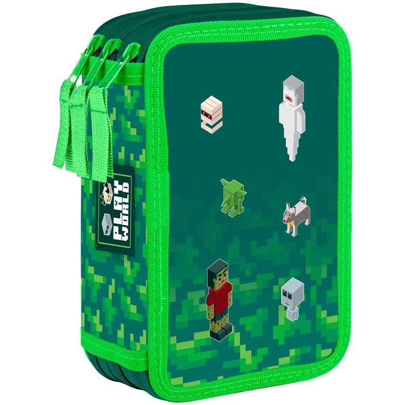 Háromszintes iskolai tolltartó töltőanyag nélkül. A tolltartó 41 gumigyűrűt tartalmaz az összes írószer és a tanításhoz szükséges apróságok tárolására. A tolltartó erős cipzárral és nagy húzófülekkel rendelkezik a könnyű kezelés érdekében. Az egyik szinten egy átlátszó rekesz található a heti beosztás számára.