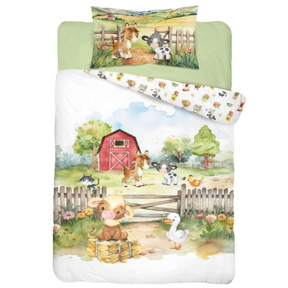 Aranyos gyerek ágyneműhuzat 3D Farm red állatokkal, a paplan mintája mindkét oldalon más.