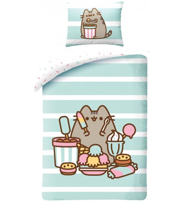 Kétoldalas pamut ágyneműhuzat a közkedvelt Pusheen cicus motívumával. Pusheen szereti az izgalmas kalandokat és a jó ételeket. A szett takaróhuzatot és párnahuzatot tartalmaz - a fényképen az ágyneműhuzat mindkét oldala látható. Cipzáras. Az Öko-Tex 100 szabvány szerint készült.