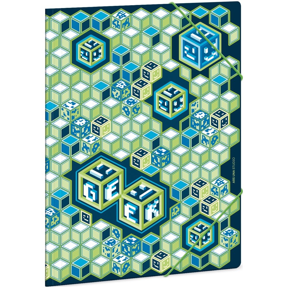 Vidám kockás grafikával díszített  A/4 méretű gumis dosszié iratok, füzetek tárolására. 350 gr-os vastag kartonból, színes gumi zárópánttal.