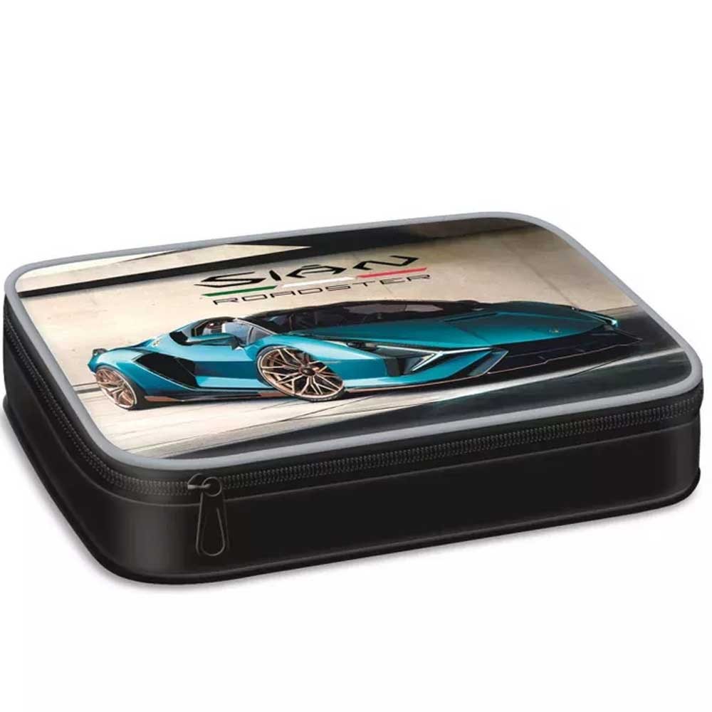Ars Una többszintes tolltartó Lamborghini 24. Többszintes, töltetlen, cipzáras tolltartó. Belül textillel bevont merev lapokkal, gumis kialakítással 30 ceruza számára az írószerek tárolásához és egy cipzáras belső zsebbel.