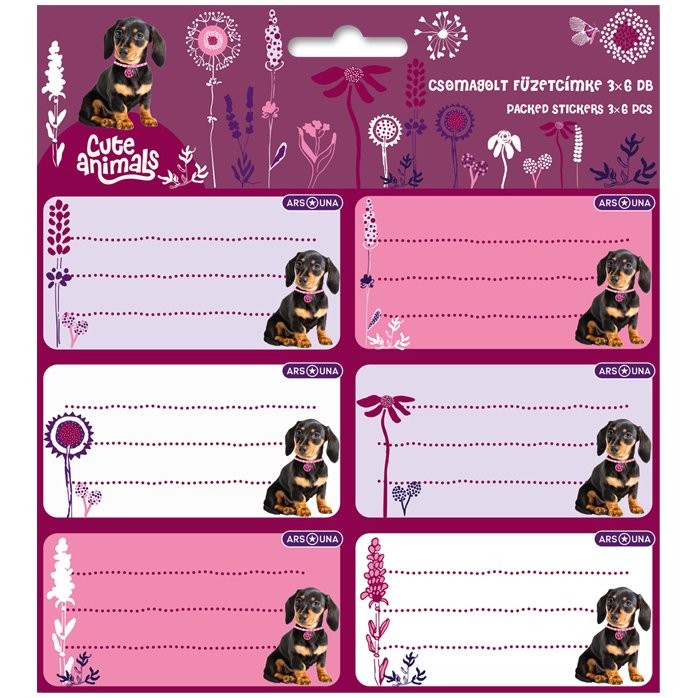 Névcédulák füzetekhez a Cute Animals - puppy kollekcióból . A csomagban három darab 6 db névtábla található, tehát összesen 18 db van a csomagban.