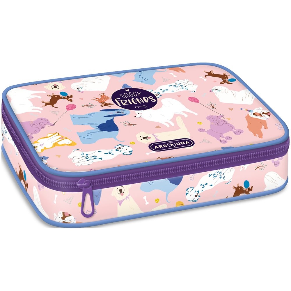 Nagyméretű, praktikus többszintes tolltartó vidám, kiskutyás mintával. Belsejében a hagyományos írószertartók mellett plusz zsebet is elhelyeztünk a legfontosabb írószerek és kincsek számára. Ceruzatartók: 30 db Radírtartó: 4 db Extra: plusz zseb további írószereknek Méret: 155x225x45 mm Súly: 268 gr