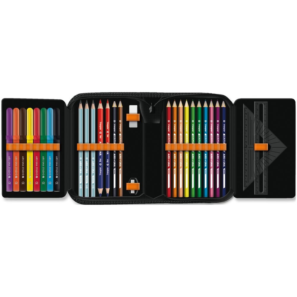 Töltött tolltartóval a szuper tanévért! Minőségi írószerekkel feltöltött tolltartó kihajtható fülekkel, külsején vidám, állatos mintával alsósoknak. Tolltartó tartalma: