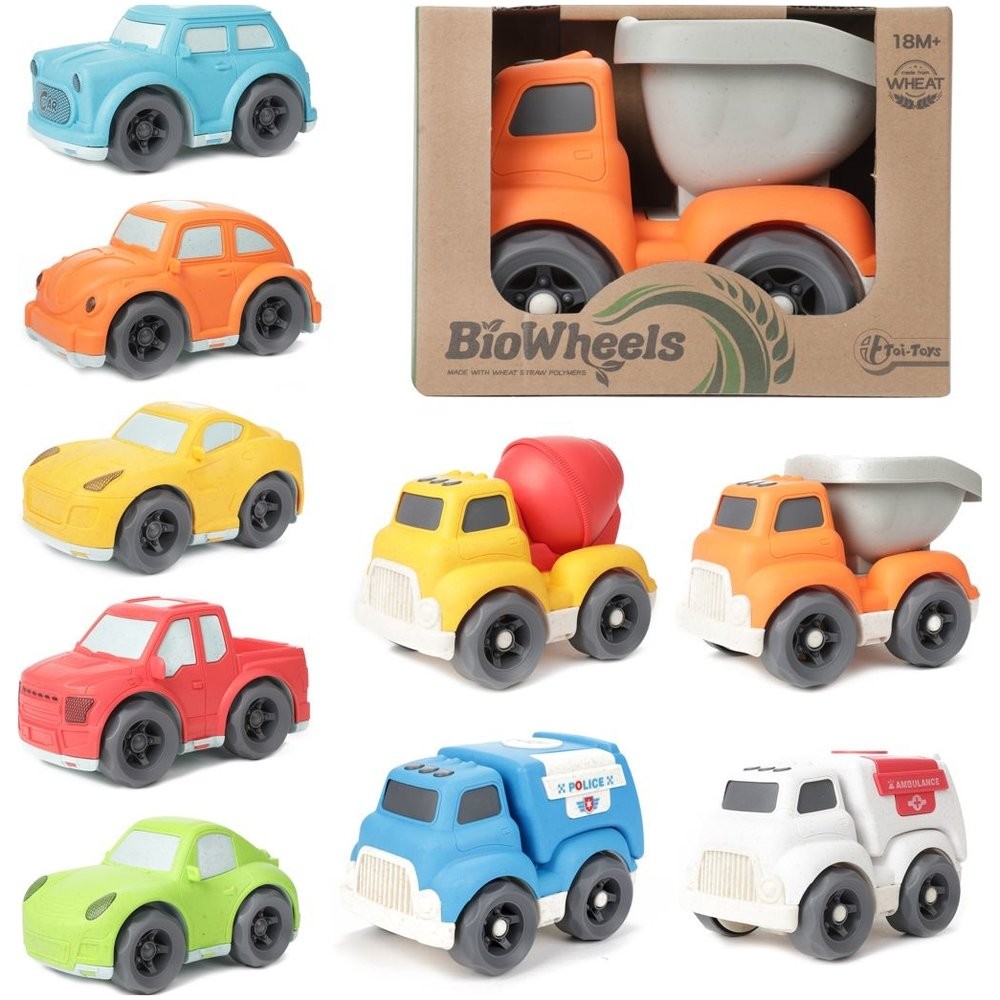 Az autók BIOplastból készülnek a legmodernebb újrahasznosított búzaszalma technológiával. Úgy tervezték, hogy csökkentsék a szén-dioxid-kibocsátást és kíméljék a környezetet. A barna kis pöttyök a búzaszalma hozzáadásával készült játékokra jellemzőek. A színes autók könnyűek és nagyon jól megépítettek, mozgékonyak és könnyen irányíthatók. Nincsenek éles széleik, ideálisak a gyermekek kis kezéhez. Többféle, így gyártott autó közül választhat. A csomag mérete 17 x 12 x 12 cm. 18 hónapos kortól alkalmas gyermekek számára.