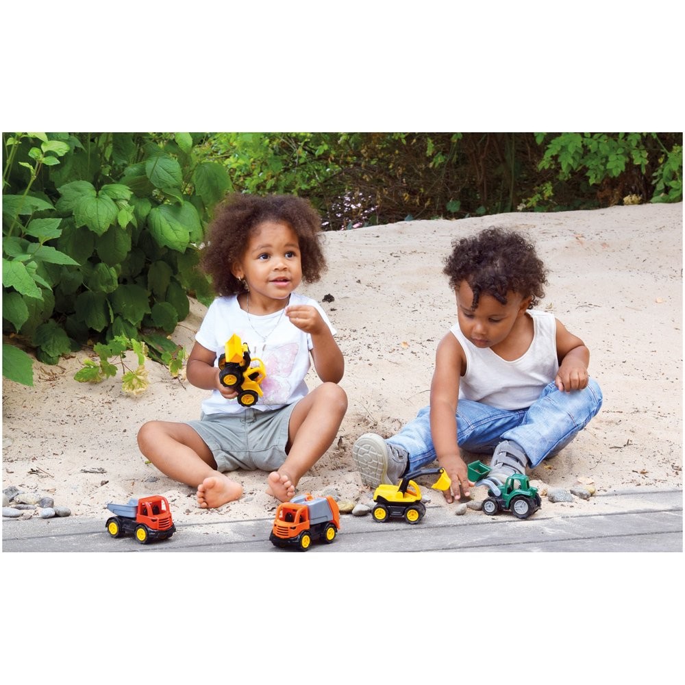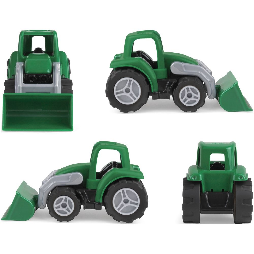 Tartós ABS műanyagból készült traktor kiváló minőségű gumírozott kerekekkel. 4 mm-es horganyzott acél tengelyek. Mérete 14 cm
