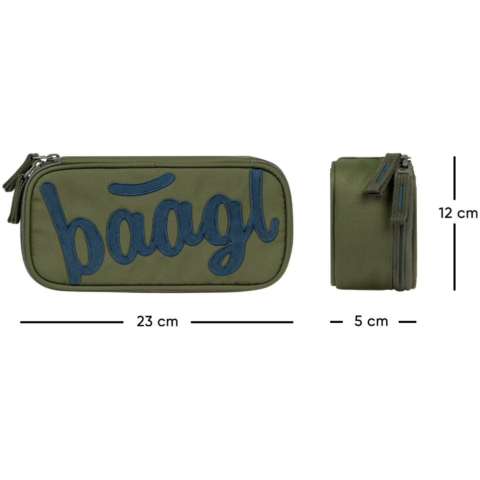 Baagl Olive iskolai tolltartó tágas főrekesszel, amely elegendő helyet biztosít írószereknek és apróságoknak.