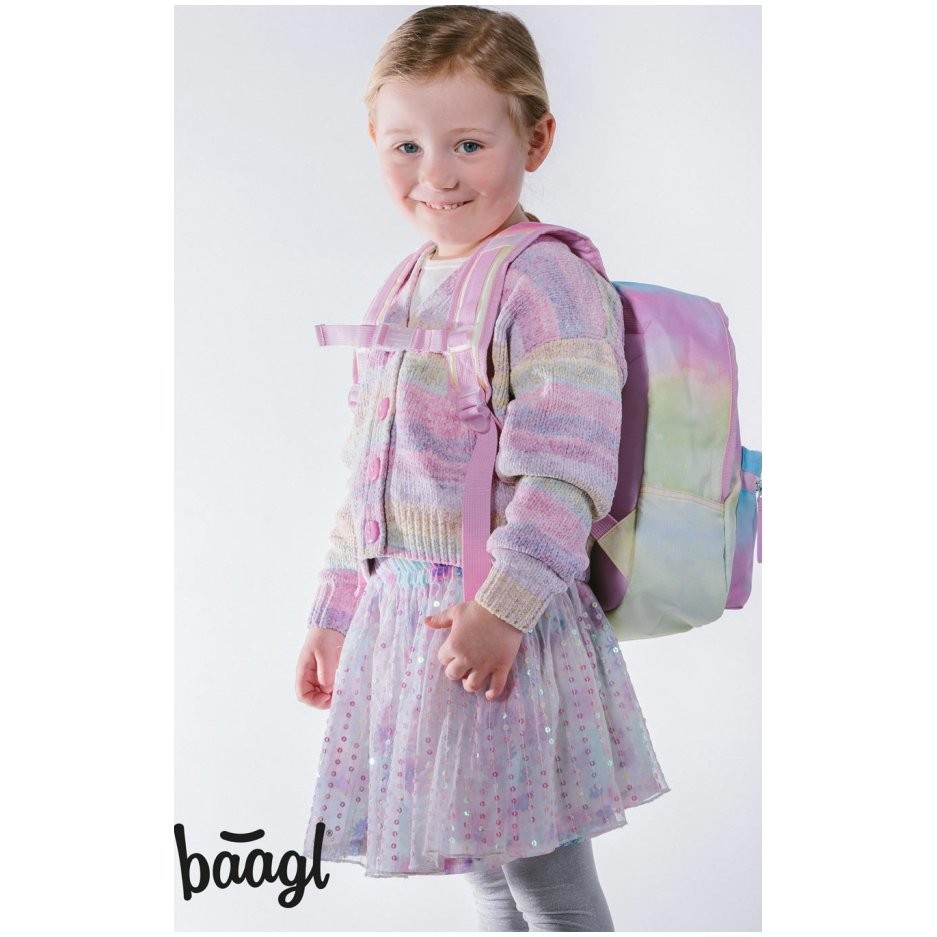Szivárvány motívumú ovis hátizsák lányoknak. A hátizsák egy tágas fő zsebbel és egy kisebb elülső zsebbel rendelkezik.