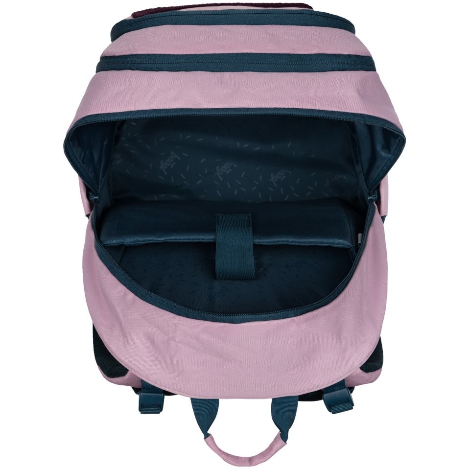 A hátizsák anatómiailag formázott, puha párnázású háttal és vállpántokkal rendelkezik.
