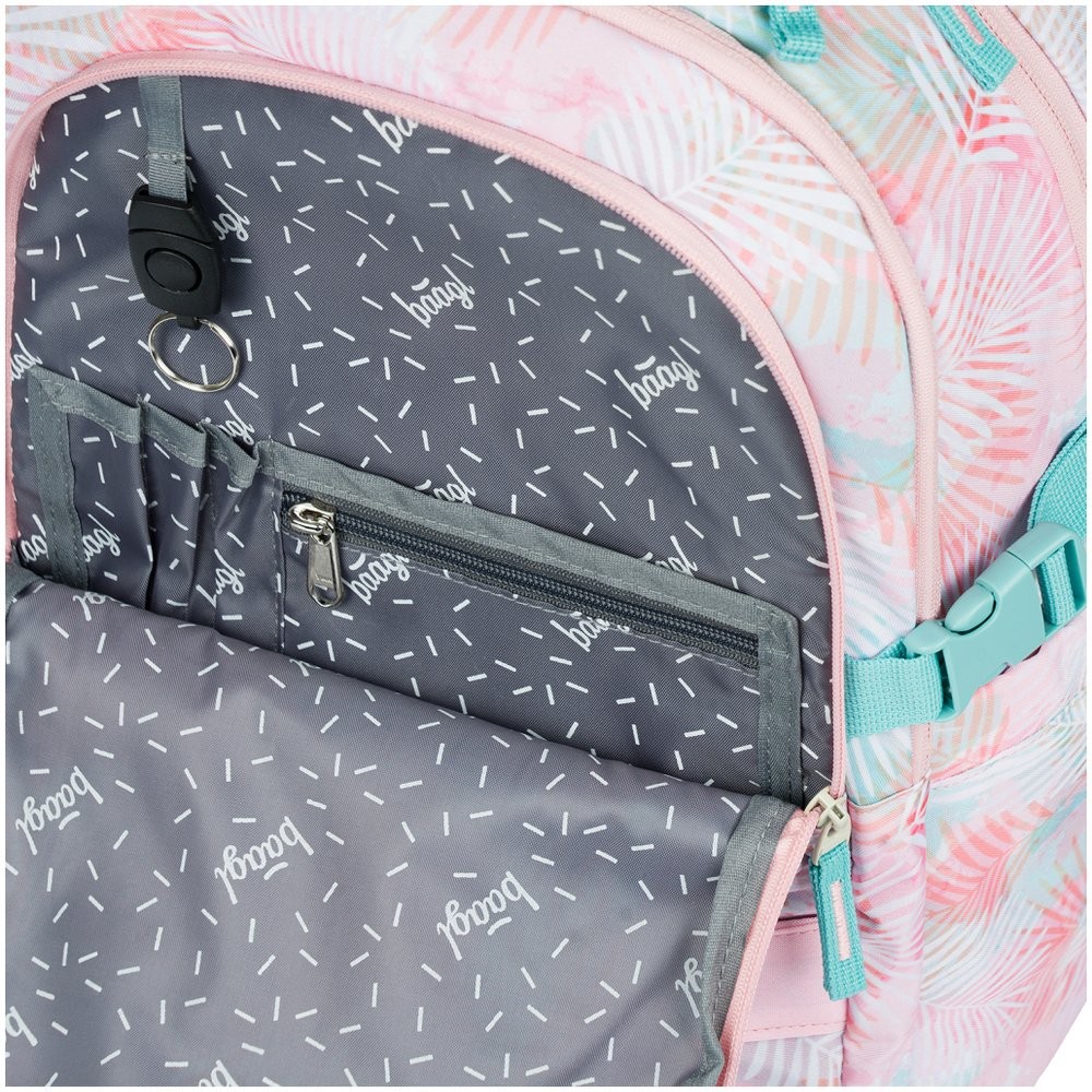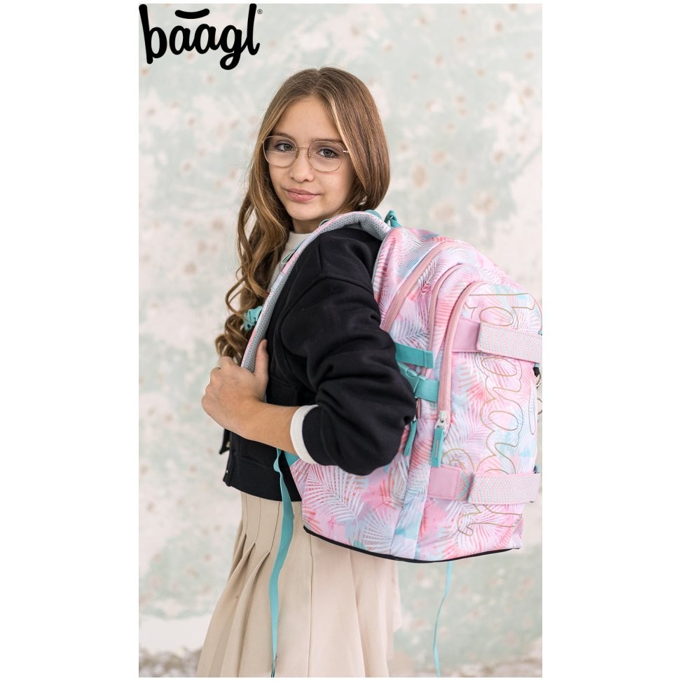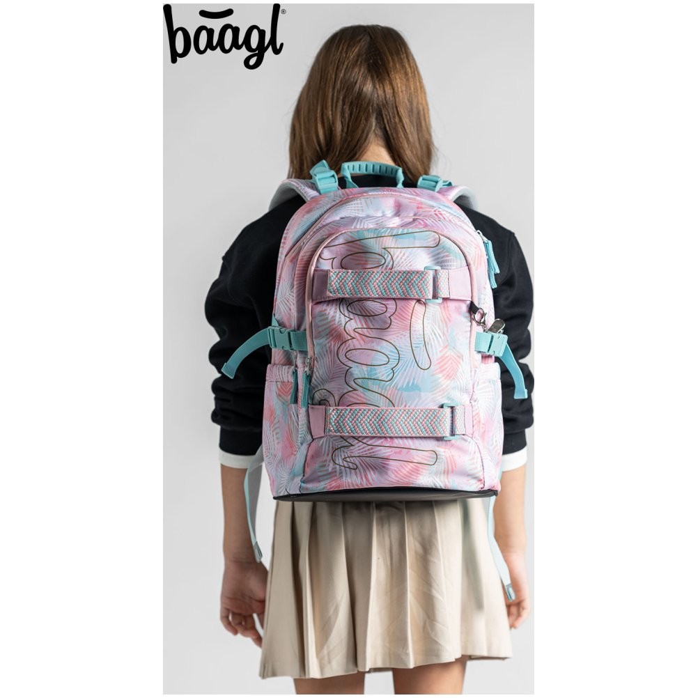 Skate strapabíró és praktikus iskolatáska lányoknak Baagl logóval az elülső cipzáras zseben. Második hátizsáknak is alkalmas - ideális az általános iskola 3. osztályától és afölött. A hátizsák anatómiailag kialakított, lágyan párnázott hát- és vállpánttal rendelkezik.