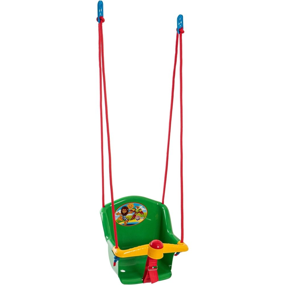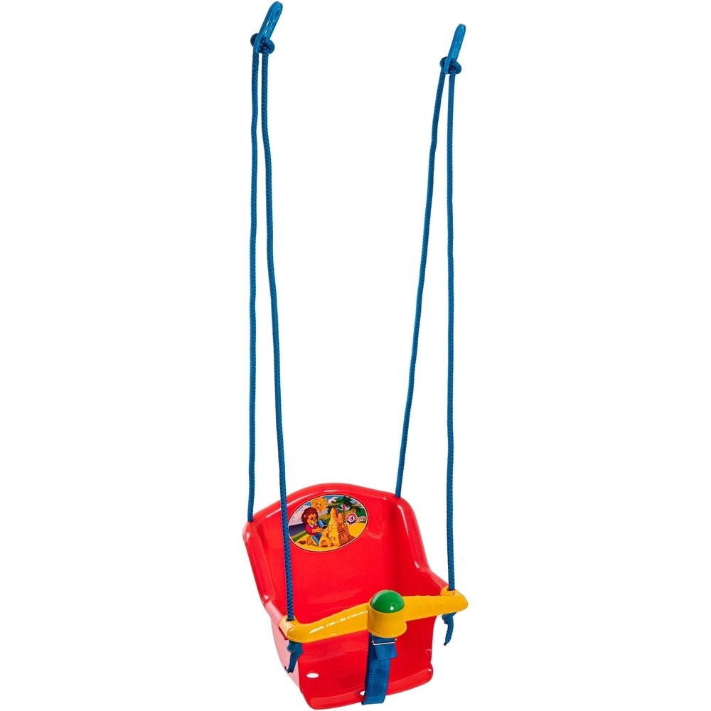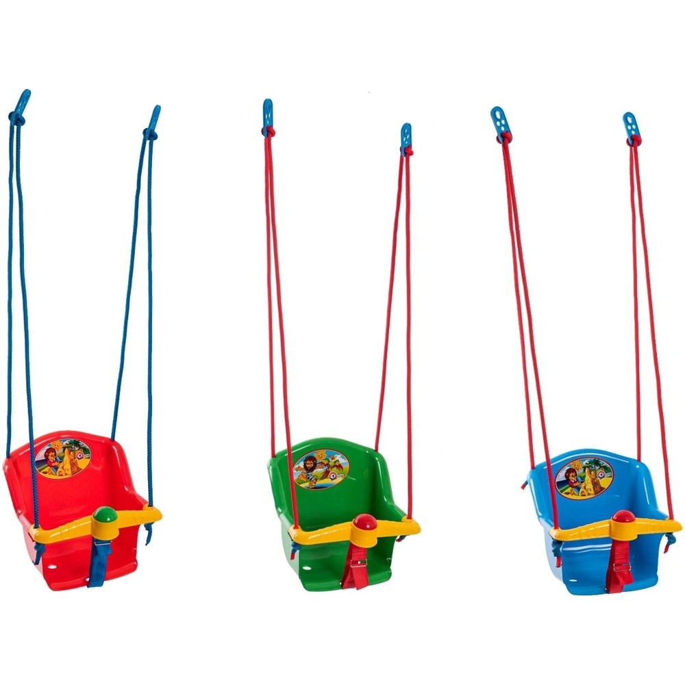 Gyermek hinta erős és tartós műanyagból, olyan hangfunkcióval gazdagodott, amely első látásra elbűvöli a gyerekeket. Ez a hinta gyerekeknek erős kötélen van felfüggesztve, a gyermeket előtt található vízszintes rúd gondoskodik a biztonságról hintázás közben. Mérete 35x34x35 cm. Teherbírás 20 kg. 3 éves kortól alkalmas.