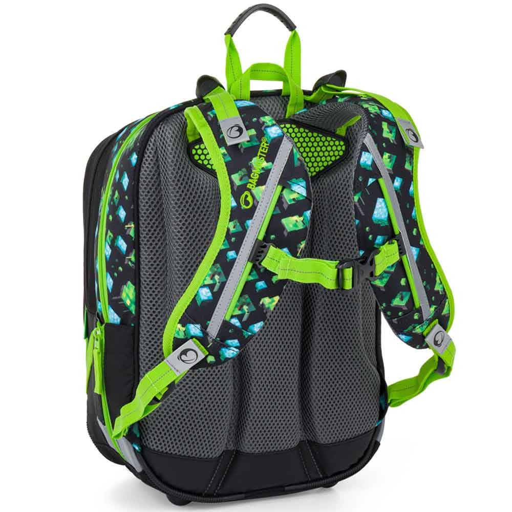 Kiváló minőségű, háromrekeszes iskolatáska fiúknak 1–3. osztályig, kedvelt játékos mintával. Első osztályba csak magasabb testalkat esetén ajánlott (kb. 128 cm-től). Fekete–zöld színkombinációjú hátizsák népszerű játékos motívummal.