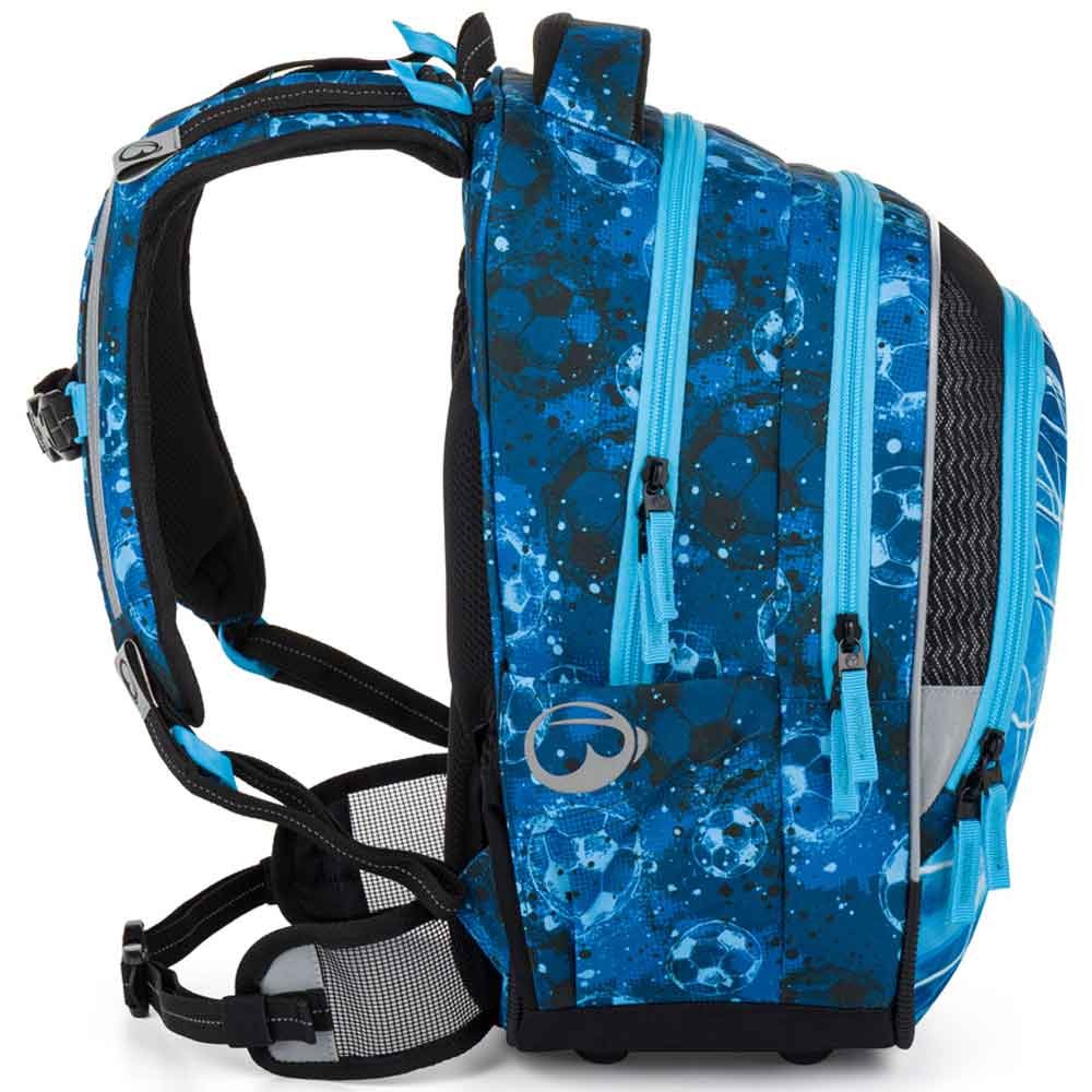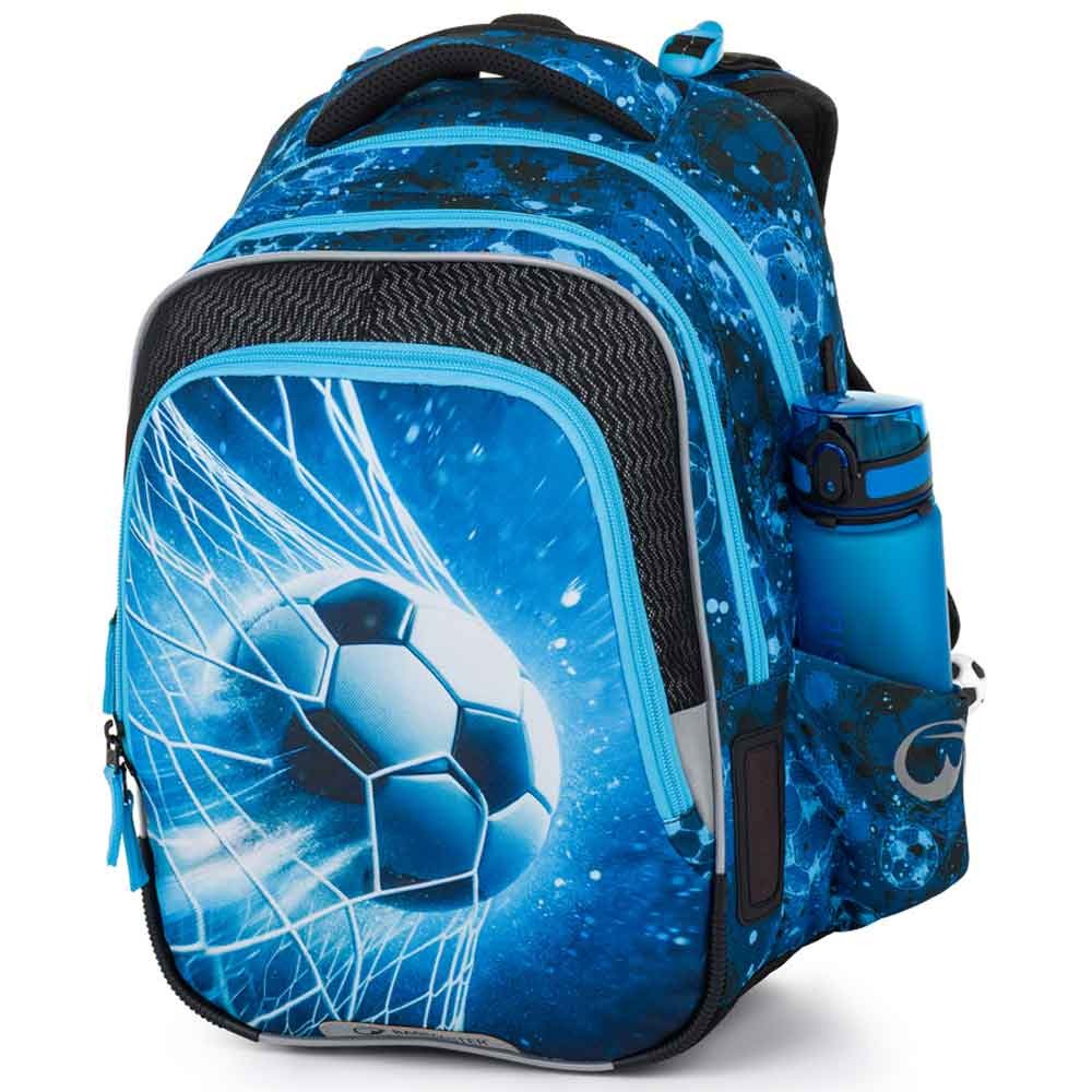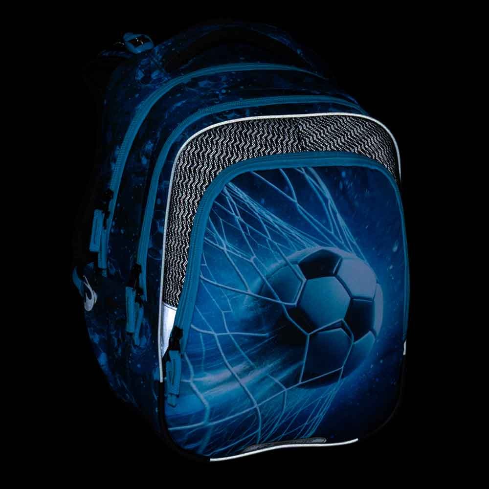 Iskolatáska kis focistáknak, az 1–3. osztályosok számára. Extra könnyű – mindössze 0,94 kg, mégis nagyon tágas és jól szervezett. Három fő rekesszel, praktikus rendszerezővel és fényvisszaverő elemekkel rendelkezik a jobb láthatóság érdekében. Az új ergonomikus hátrendszer puha habpárnákkal és levehető derékpánttal segíti a súly egyenletes elosztását és támogatja a helyes testtartást. A hátizsák műanyag lábakon áll önállóan, és úgy tervezték, hogy kibírja a mindennapi használatot.