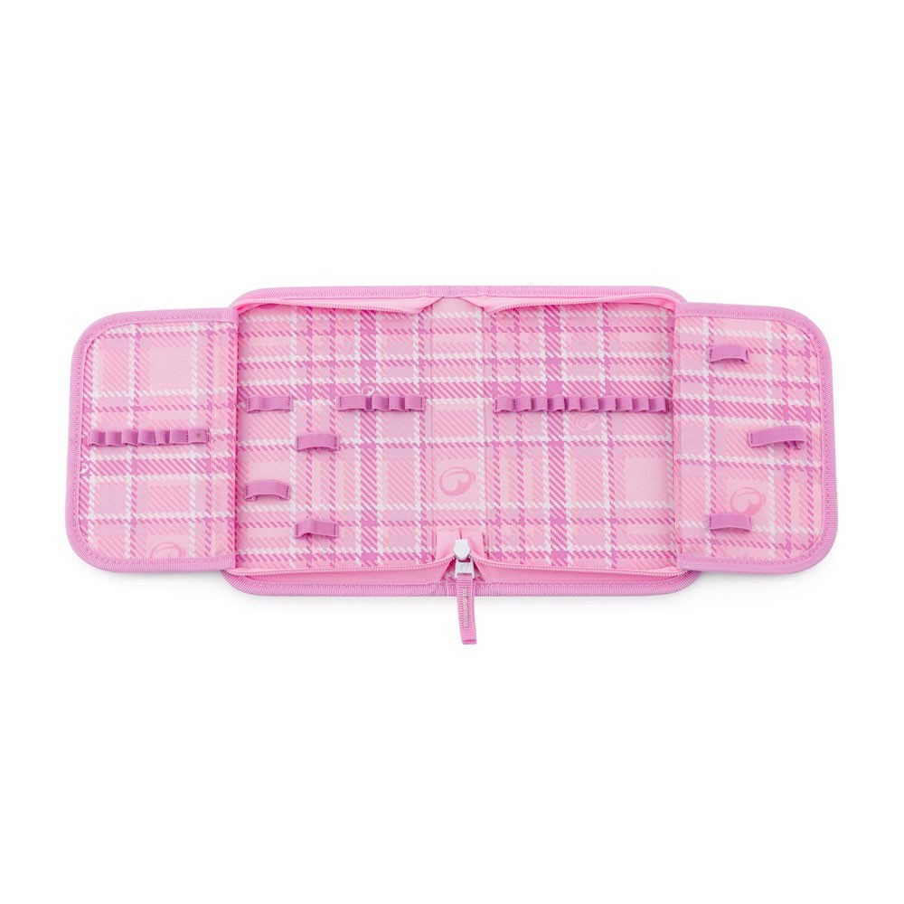 Rózsaszín nyúllal ellátott iskolai tolltartó kisiskolás lányok számára ideális. A tolltartó lányoknakkiváló minőségű cipzárral záródik. Könnyű és nem foglal sok helyet a hátizsákban. A két nyíló szárnyon 35 rugalmas gumi markolat található zsírkrétákhoz, tollakhoz, jelölőkhöz, radírokhoz, ollókhoz, iránytűekhez és egyéb eszközökhöz. A fedél tetején egy átlátszó zseb található az órarendnek és a tanítási kártyáknak.