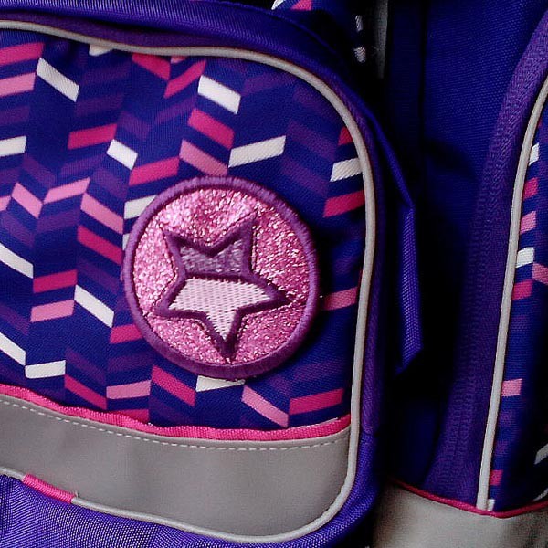 Az iskolatáska egy nagy rekesszel rendelkezik, mozgatható válaszfallal és egy kis cipzáras zsebbel. A felső szélét húzózsinórral lehet meghúzni. Az egész táska egy nagy, mágneses tolózáras fedéllel záródik. A fedélben található egy további cipzáras zseb apróságok tárolására.
