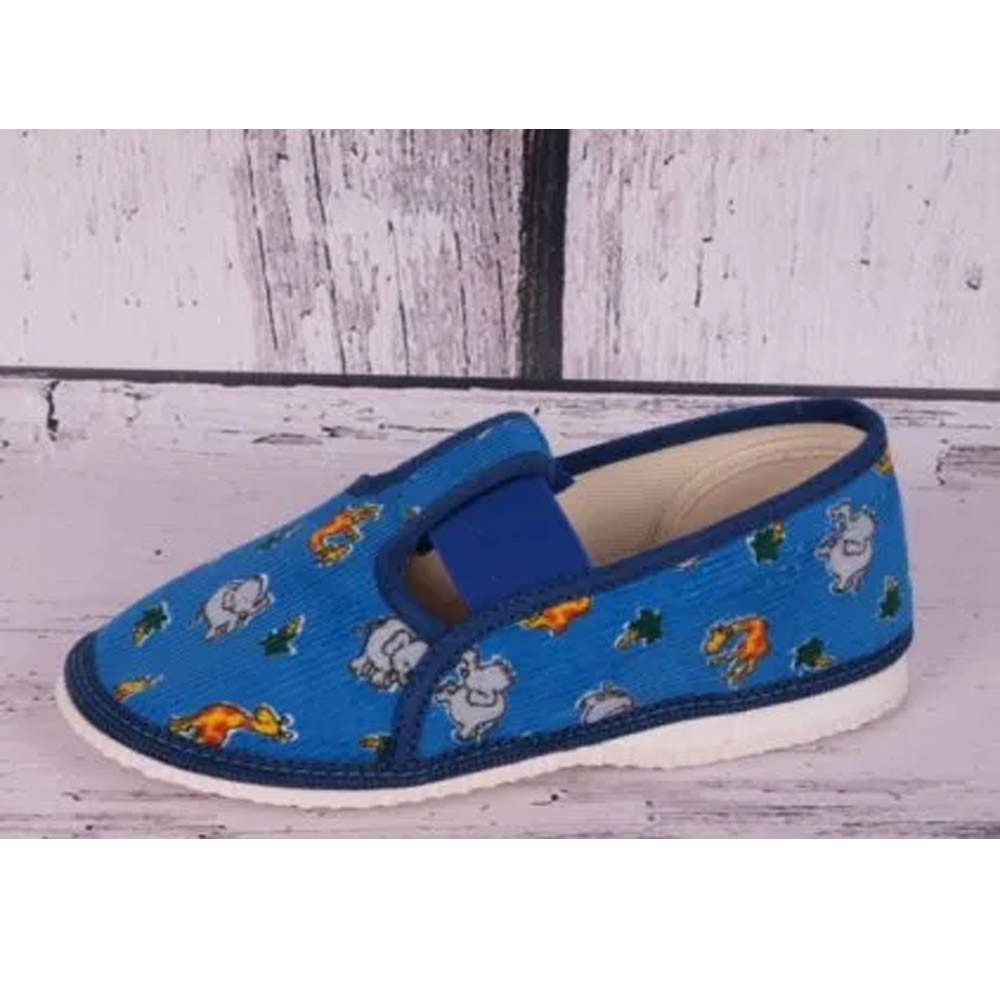 Klasszikus papucs elefánt és zsiráf motívummal. A papucs talpa sztiropor. A papucs zsiráf tanúsítvánnyal rendelkezik, és egészséges, ortopéd talpbetéttel van felszerelve, amely megakadályozza a lapos lábak kialakulását. Ez a papucs óvodába, iskolába járó gyerekeknek készült. A papucsok talpának csúszásgátló talpkezelése és fehér színe garantálja, hogy semmilyen felületen nem hagynak nyomot. A papucs sarka kellően kemény, körbe szegett sarokkal rendelkezik, ami nem csak esztétikus, de megakadályozza a sarokkopást is. A lábfej feletti gumi 2,5 cm széles és így biztosítja, hogy a papucs a lábon maradjon.