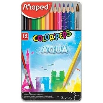 Ceruzák MAPED fémdoboz Aqua 12 szín + ecset / 836014 /