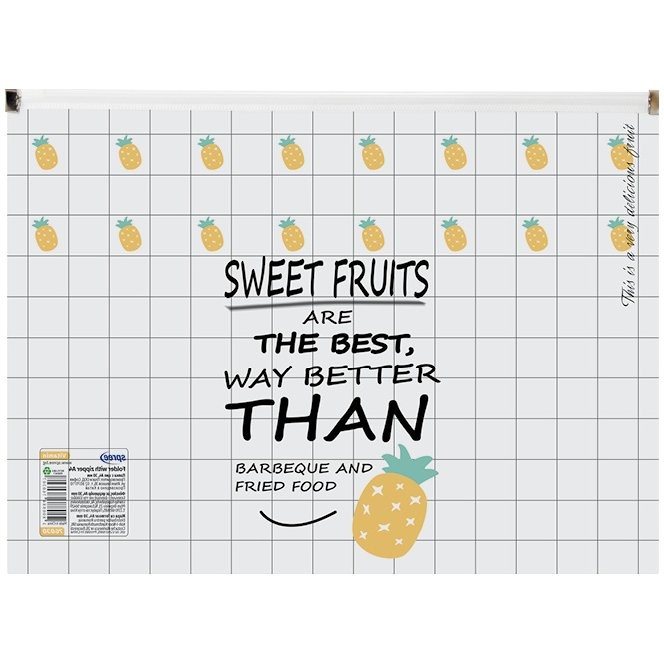 A4-es formátumú irattartó cipzárral. Anyag: polipropilén.