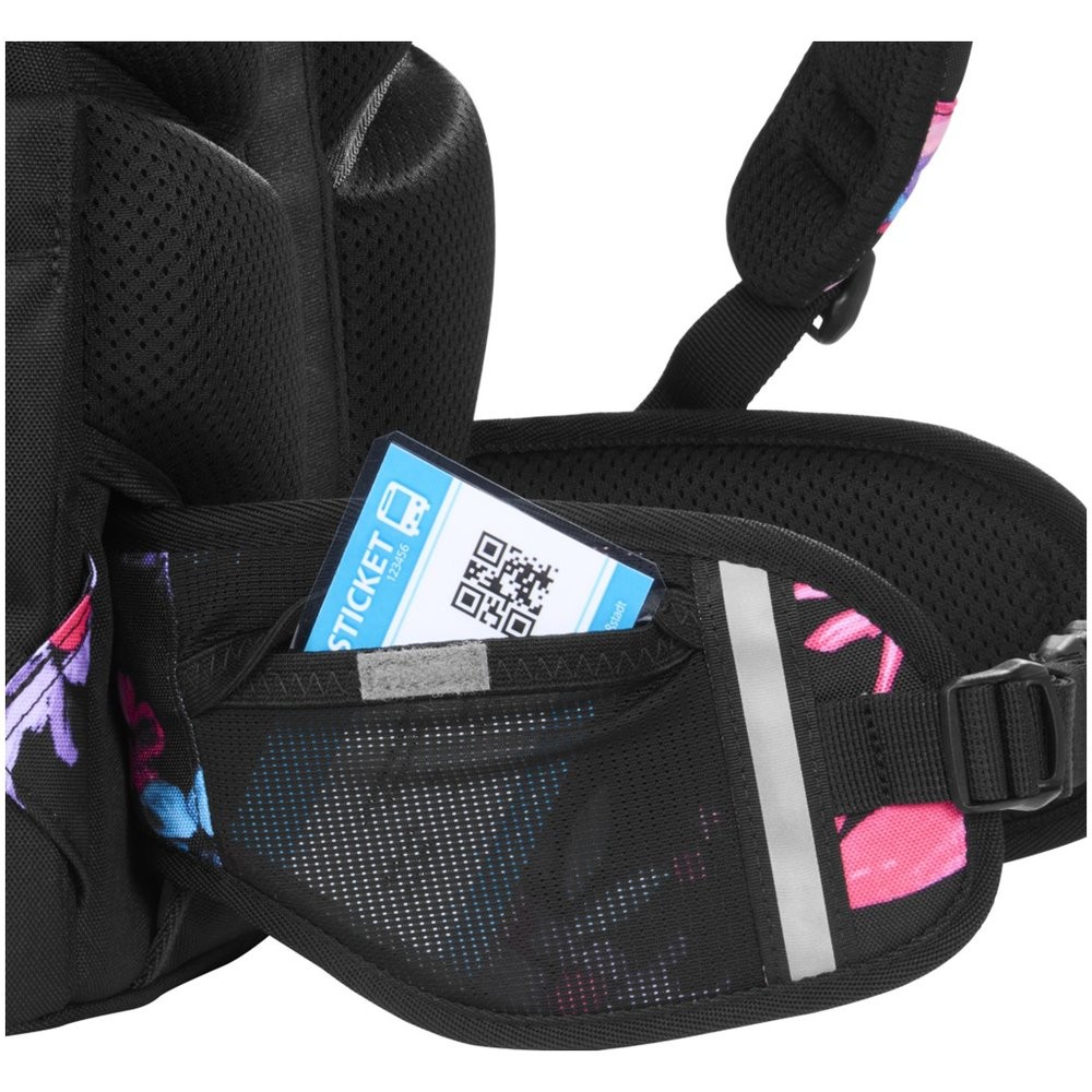 Kis hálós zseb a derékpánton, két nyitott, kifelé nyíló oldalsó zseb, párnázott fogantyú és akasztó, valamint öt zseb az összes iskolai felszerelés tárolásához. Fő zseb könyvtartóval és kivehető válaszfallal, nagy zseb, szervezővel ellátott zseb és két kis elülső zseb, pl. uzsonnásdobozhoz és apró személyes tárgyakhoz, valamint lehetőség a tablet szervezőjének rögzítésére a fő zseb belsejében (külön kapható). Extra nagy főzseb a jobb áttekinthetőség érdekében, stabil, szilárd alj, reflex elemek a nagyobb biztonság érdekében a közúti forgalomban, szürkületben és sötétben, valamint LED villogó lámpa rögzíthetősége a még jobb láthatóság érdekében.