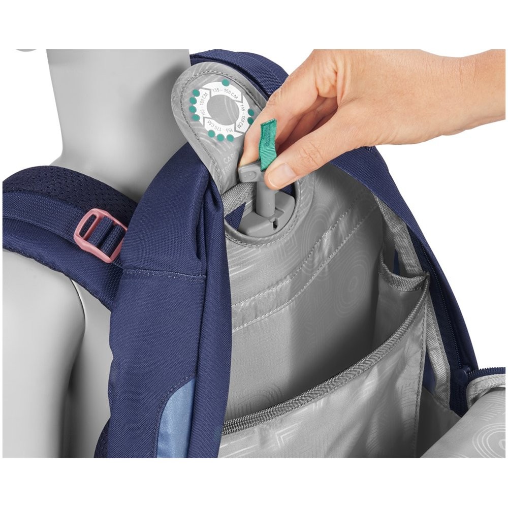 a vállpántok pontos beállítása közvetlenül a gyermek hátán (ergonómikus adaptáció a hát méretének megfelelően)
