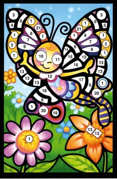 Az előre nyomtatott számokkal ellátott képre csillogó matricákat ragaszthatsz. Gyönyörű színes kép jön létre. 6 éves kortól alkalmas. A kép mérete 15 x 10 cm