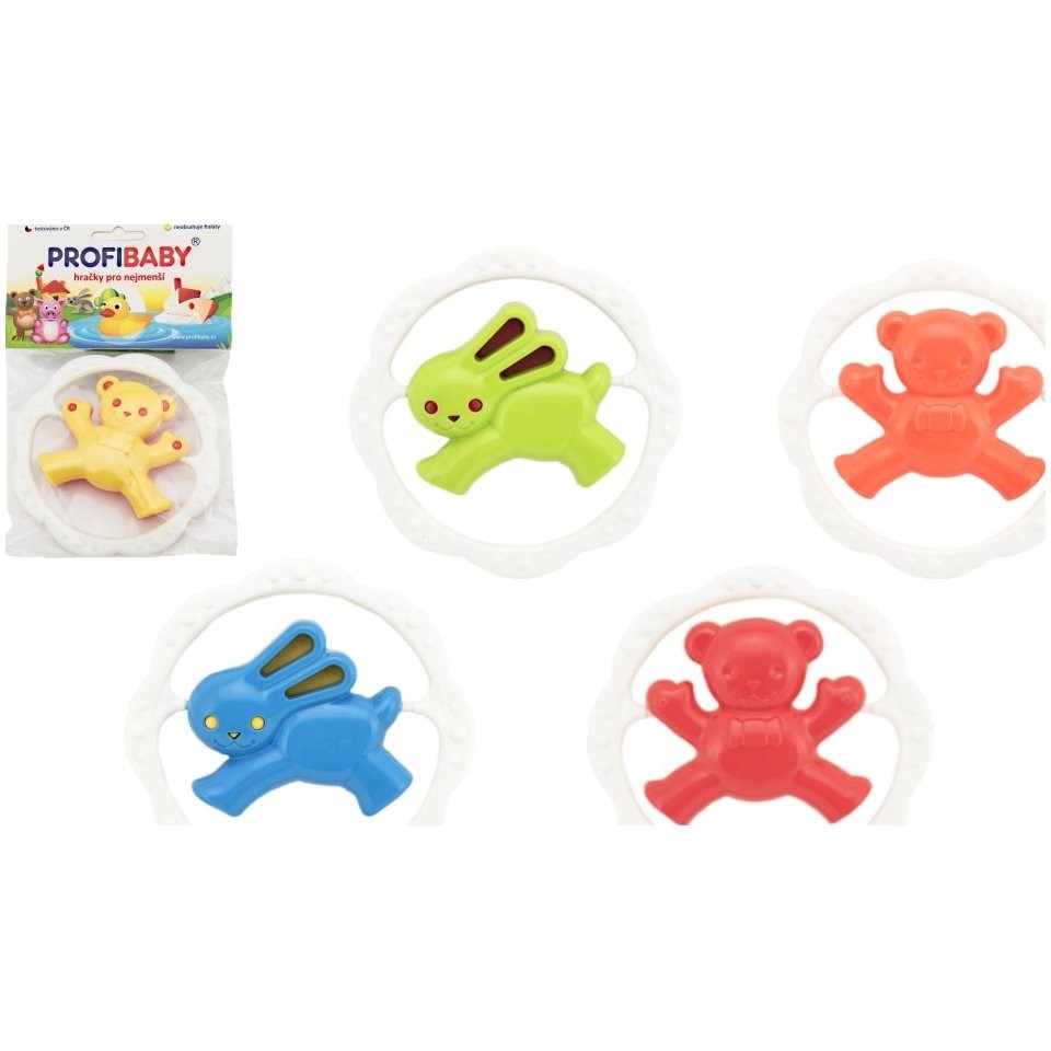 Színes csörgő medve vagy nyúl motívummal. Fejleszti a gyermek motoros és vizuális képességeit.