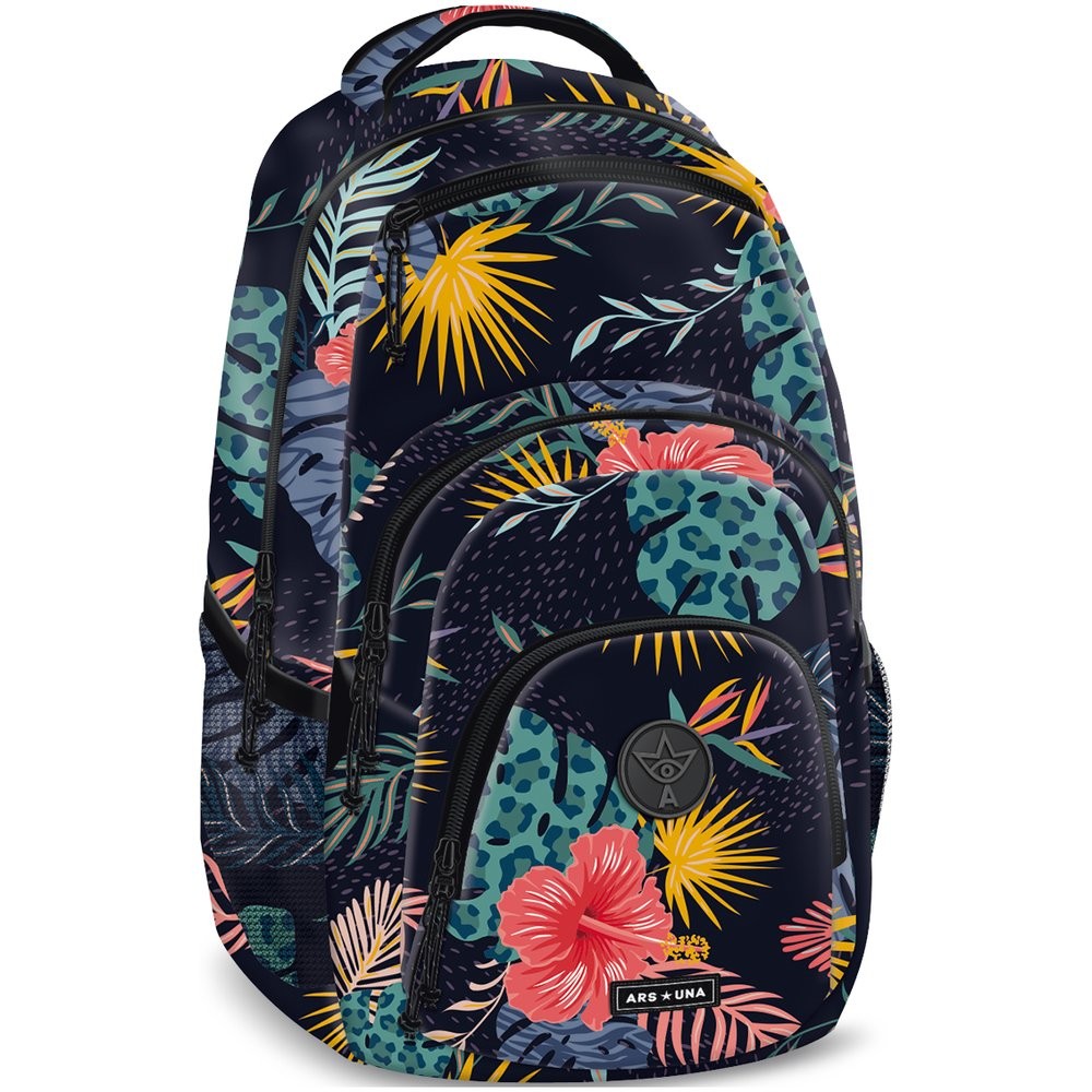 Kiváló minőségű iskolai hátizsák Aloha Night kivitelben, AU2 típus . A hátizsák első osztályú és szilárd anyagból készül . Négy fő rekeszből áll, cipzárral és egy másik gazdag belső osztással, amely íróeszközöket, mobiltelefont vagy más apróságokat tartalmaz. A hátizsákban van egy polár rekesz is a szemüveg biztonságos tárolásához. További előny a párnázott rekesz egy laptop számára (14 "méretű). Fényvisszaverő elemeket helyeznek el a hevedereken. A hátizsák hátulja párnázott és állítható, van mellkaspánt is, amelyet szükség esetén teljesen eltávolíthatunk.