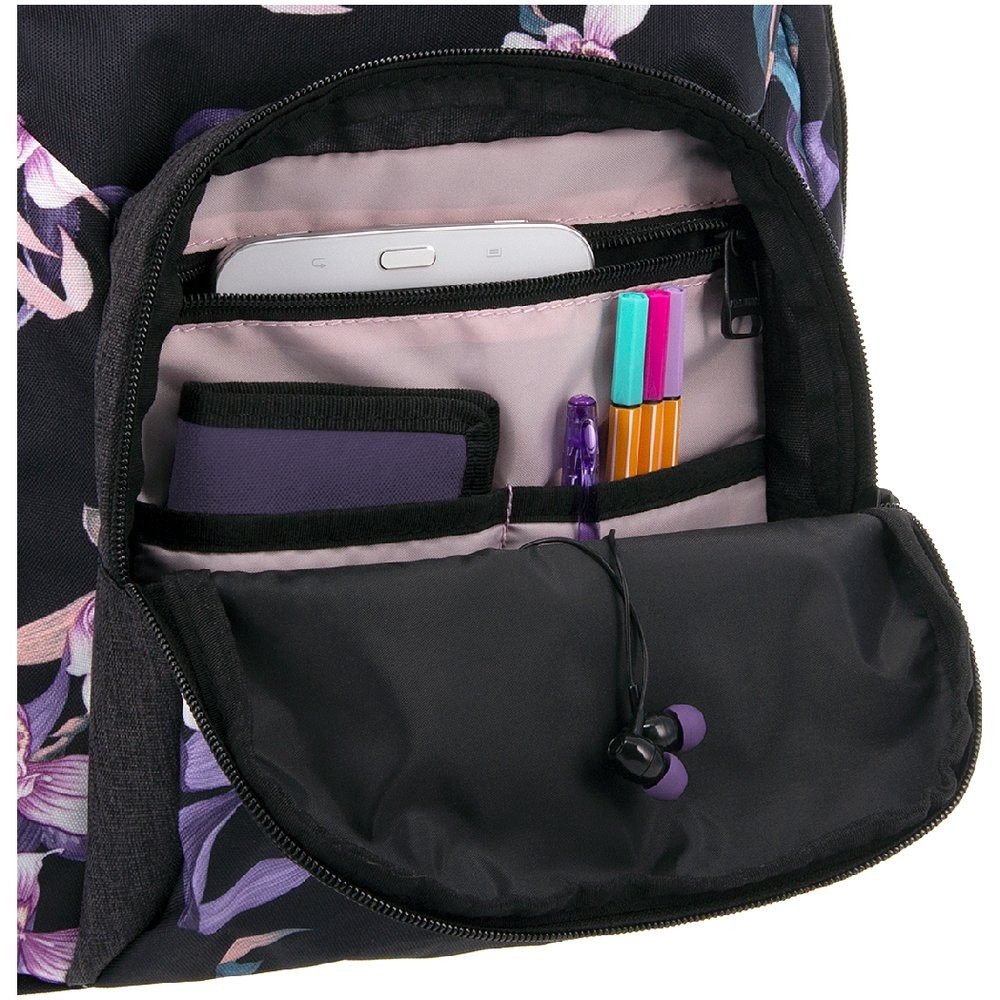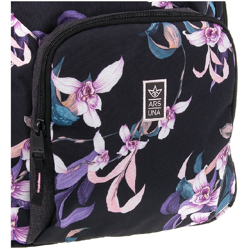Az iskolatáskának és hátizsáknak is ajánlott Ars Una hátizsák gyönyörű, virágokkal mintázott. A látványos, fekete háttéren pasztell orchideák sokasága díszíti ezt a divatos táskát. Az Ars Una iskolatáska rekeszeibe és zsebeibe kényelmesen belefér minden iskolai és személyes holmid. A táska többfunkciós, így tökéletes választás iskolába, utazáshoz, kiránduláshoz, szabadidős tevékenységhez.