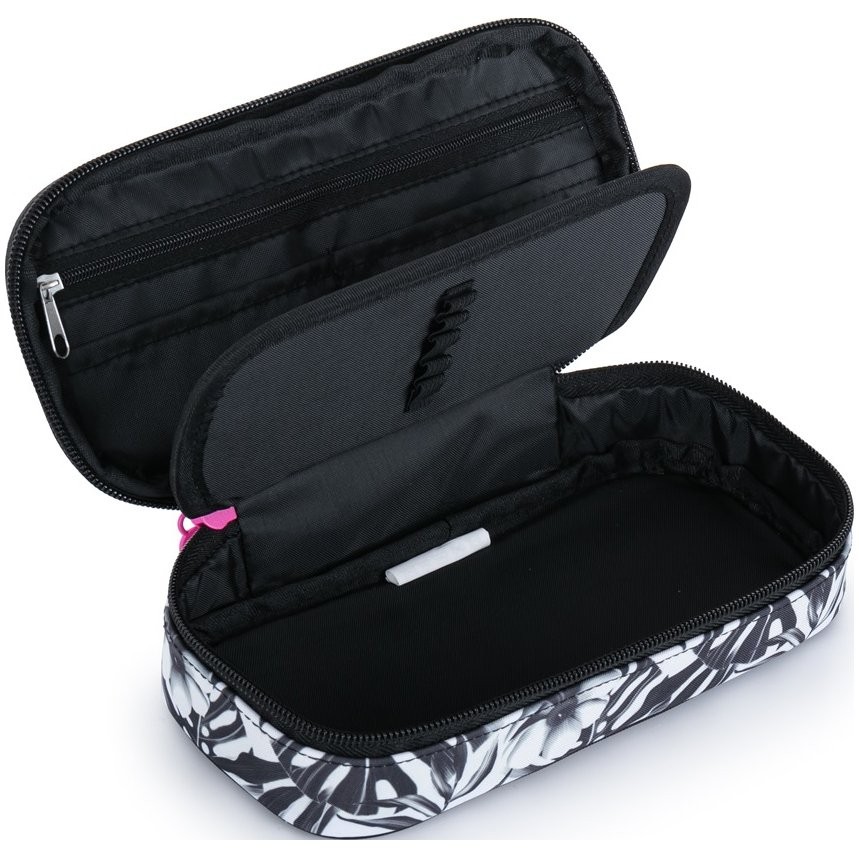 Henger tolltartó levelek motívummal. A tolltartó erős cipzárral, cipzáras zsebbel és mindkét oldalán erős hurkokkal ellátott fedéllel rendelkezik. A fedél alatt szabadon tárolhatóak az írószerek és egyéb apróságok. Felső tagozatos és idősebb diákok számára alkalmas.Méretek: kb. 20,5 x 10 x 5 cm