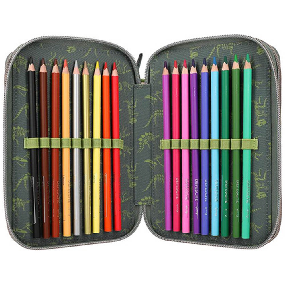Három emeletes tolltartó fiúknak kiváló minőségű anyagból készült, amely ellenáll a normál kopásnak. A jól átgondolt tolltartóban 2 ceruza, 18 zsírkréta, 18 filctoll, olló, ragasztó, vonalzó, kis zseb, ceruzahegyező és radír található.