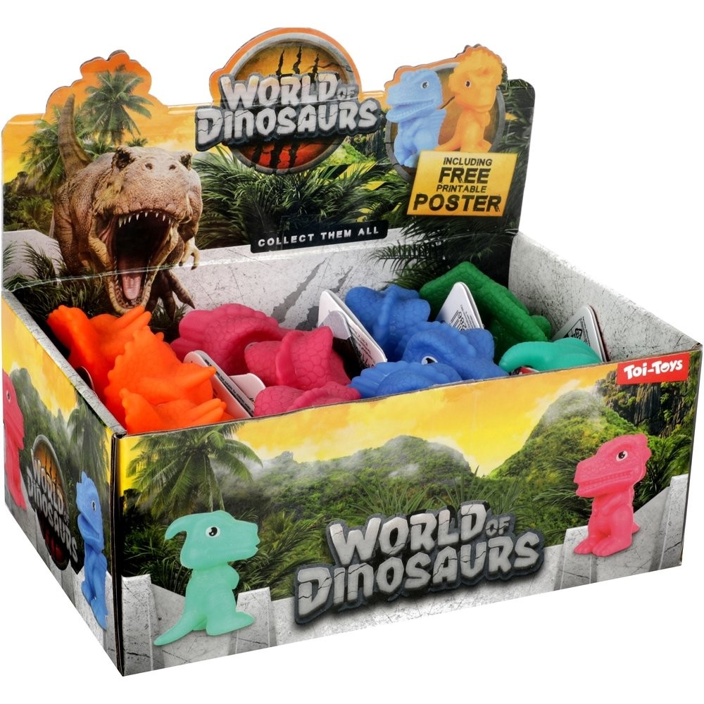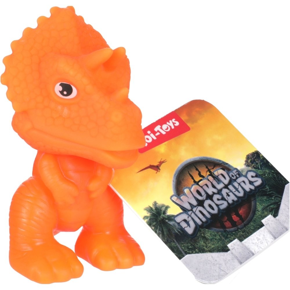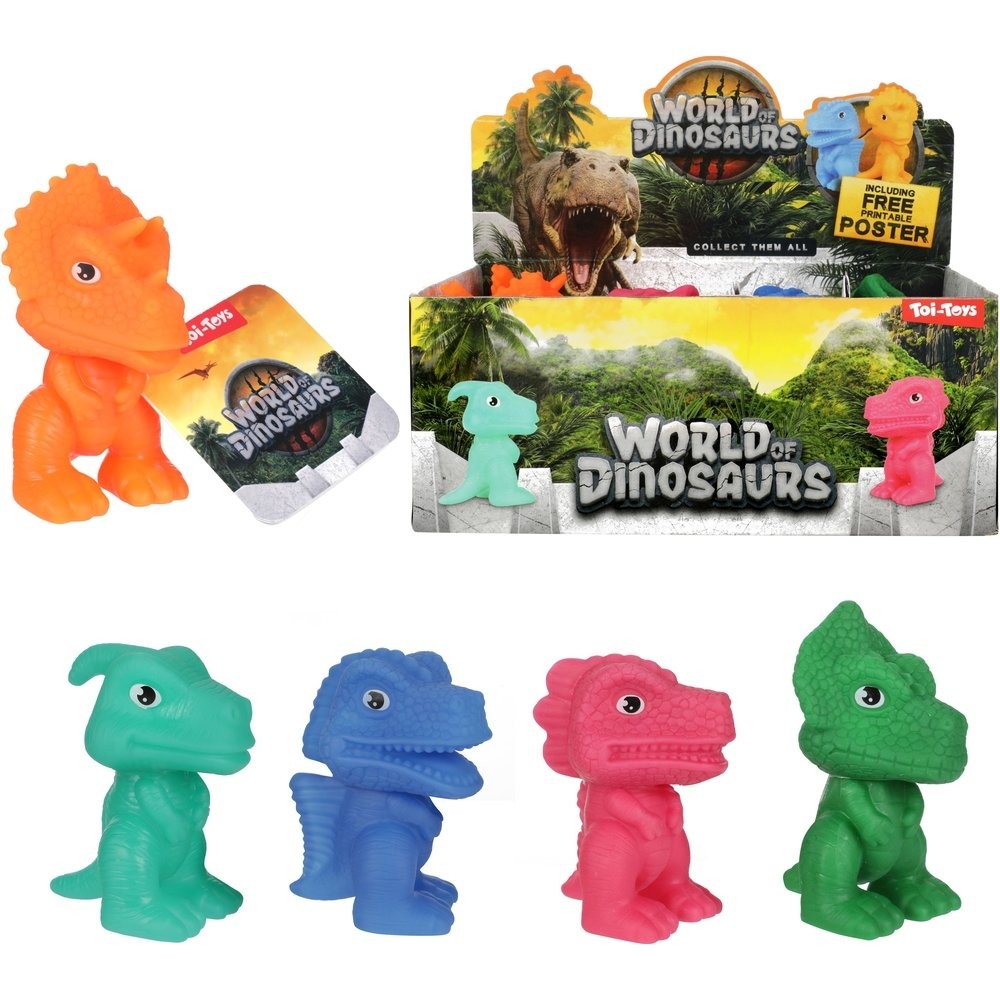Bővítse dinoszaurusz-gyűjteményét ezekkel a kis gumifigurákkal. A dinoszauruszoknak forgó fejük van. 5 típus közül választhatsz. A termék méretei 5 x 9 x 6 cm. Gyermekeknek 3 éves kortól alkalmas.