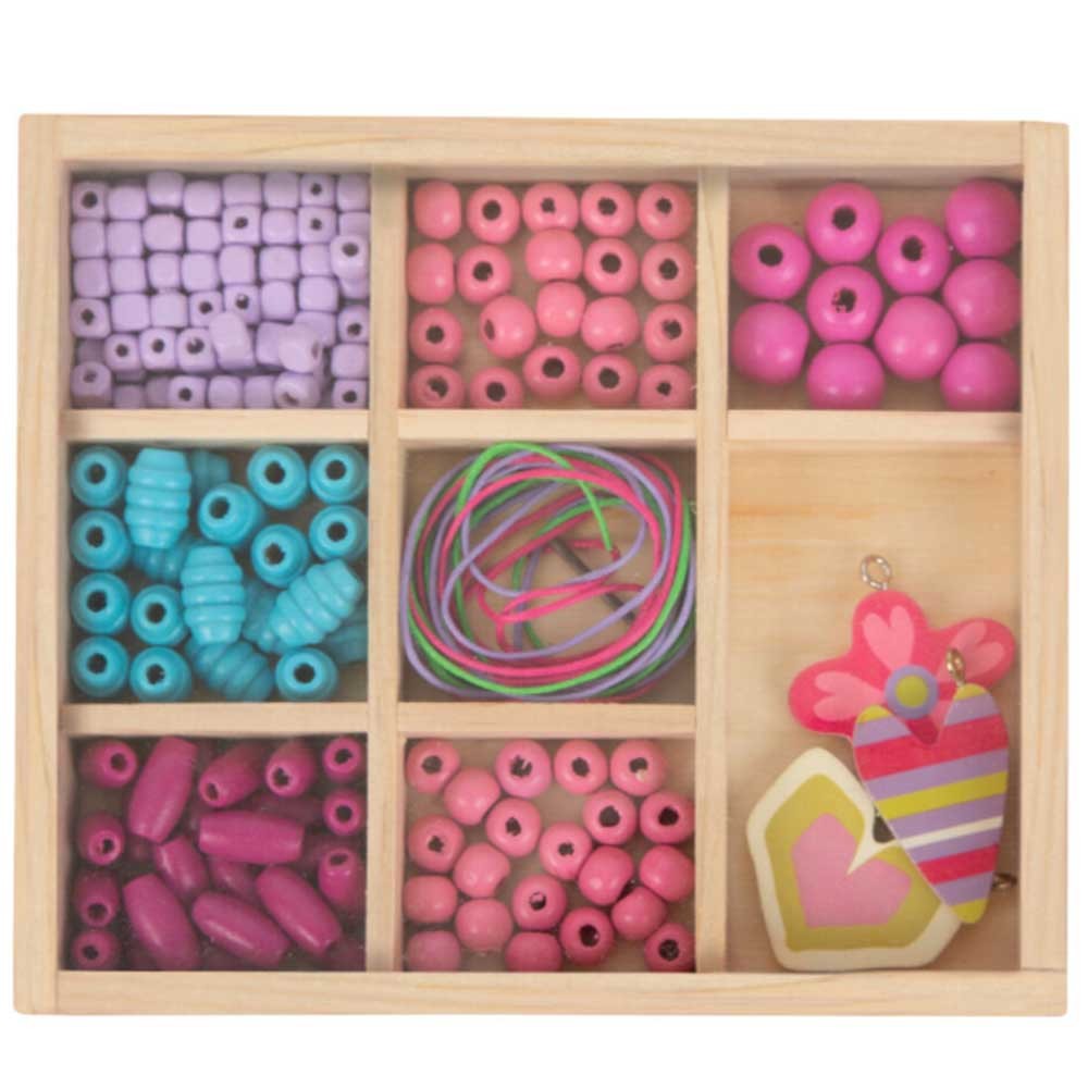 Készítsd el saját ékszereidet ezzel a kreatív Fa gyöngyök, amely öt különböző színű és formájú gyöngyöt tartalmaz. A gyöngyszettet három, vidám mintájú medál és három, színben harmonizáló zsinór egészíti ki. Mindez egy fa dobozban van elhelyezve.