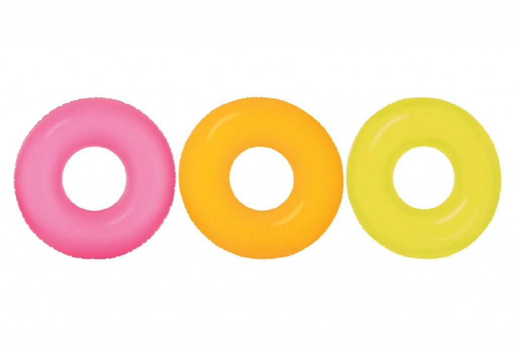 Felfújható úszógyűrű gyerekeknek vízen, neon színben.