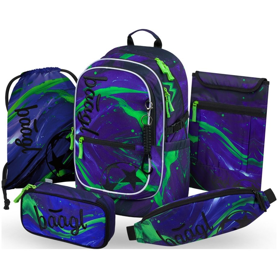 Iskolai készlet Baagl Core Football champion – ergonomikus hátizsák, diáktolltartó, övtáska, tornaszák és notebooktartó:
