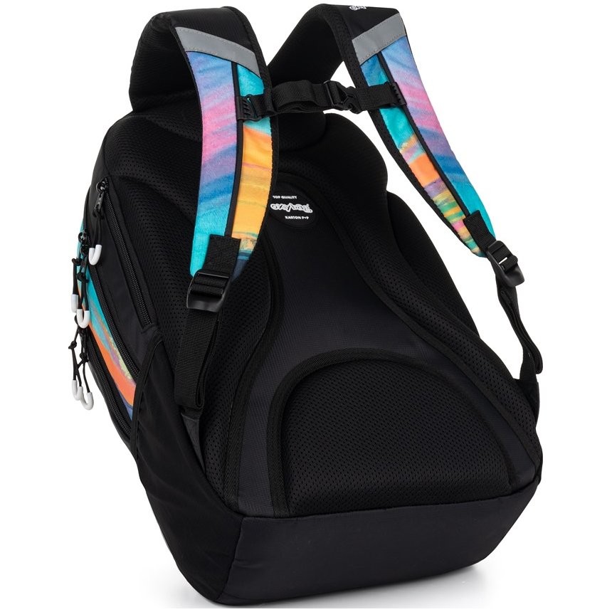 Az OXY SPORT sorozat diák- és szabadidős iskolai hátizsákja ergonomikusan kialakított háttámlájával, állítható párnázott vállpántjaival és mellpántjával tűnik ki, amelyek kényelmes viseletet biztosítanak.