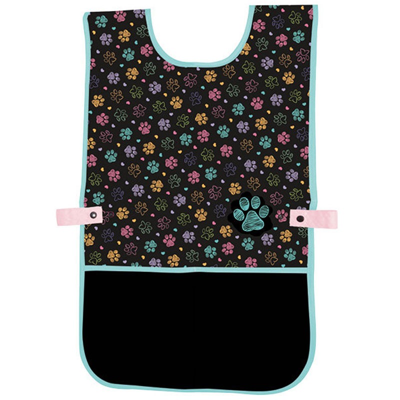 Praktikus szabású, szegecsekkel rögzíthető kötény rajzorához. A kötényt hátul nem kell megkötni, a derék körüli méret szegecsekkel könnyen állítható, ugyanakkor az új szabásnak köszönhetően nagyobb testrész védett. A kötény két zsebbel rendelkezik, és könnyen mosható.