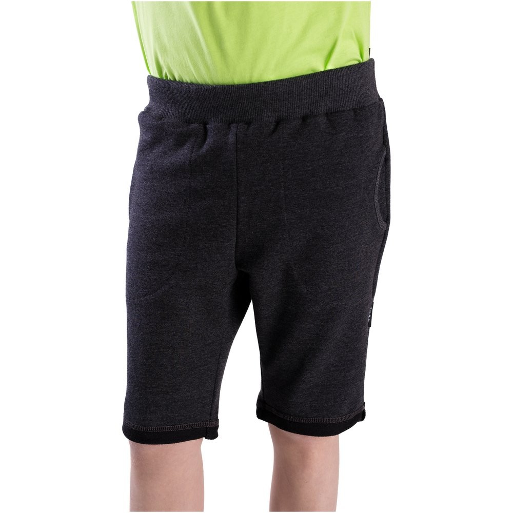 Pamut gyerek rövidnadrág modern mintával. Rugalmas derék megkötőzsinórral, 2 zseb. A 4 cm széles gumi a derék oldalsó részén varrott, hogy ne csússzon el. A fekete rövidnadrág derékban megkötőzsinór nélkül készül.