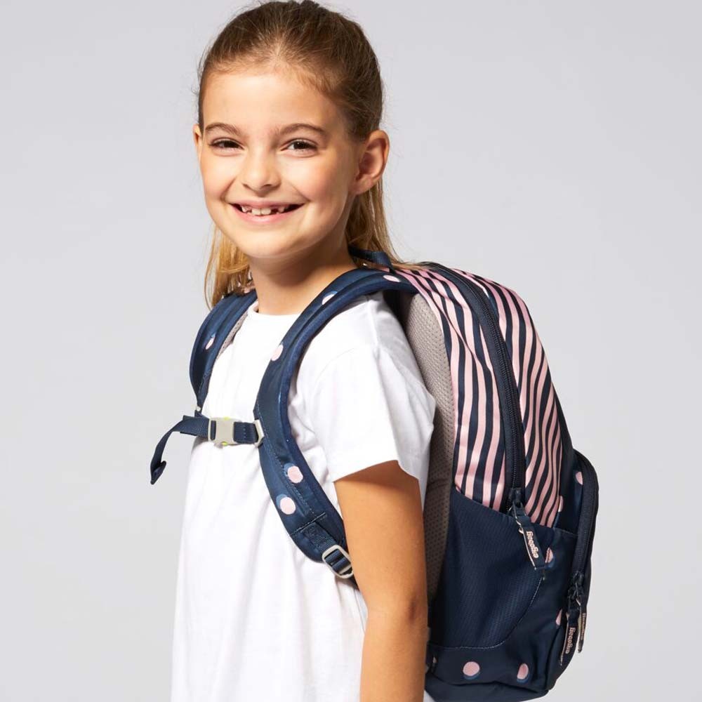 A fényvisszaverő elemek rossz idő esetén is jó láthatóságot biztosítanak a gyermek számára. A hátizsák szövete impregnált, ami ellenállóvá teszi az esővel és a szennyeződésekkel szemben (1500 mm-es vízoszlop). A hátizsák súlya csak 370 g.