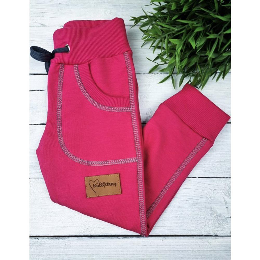 Sötétrózsaszín színű melegítő nadrág lányoknak, eredeti varrással. Hagyományos szabású, alsó részén kötött anyagból készült rész található, amely kényelmes viselést biztosít. Ennek az anyagnak köszönhetően a nadrág nem fog felcsúszni a különböző tevékenységek során, a melegítő nadrág a derékrészen gumival, valamint funkcionális kötőkkel ellátott.