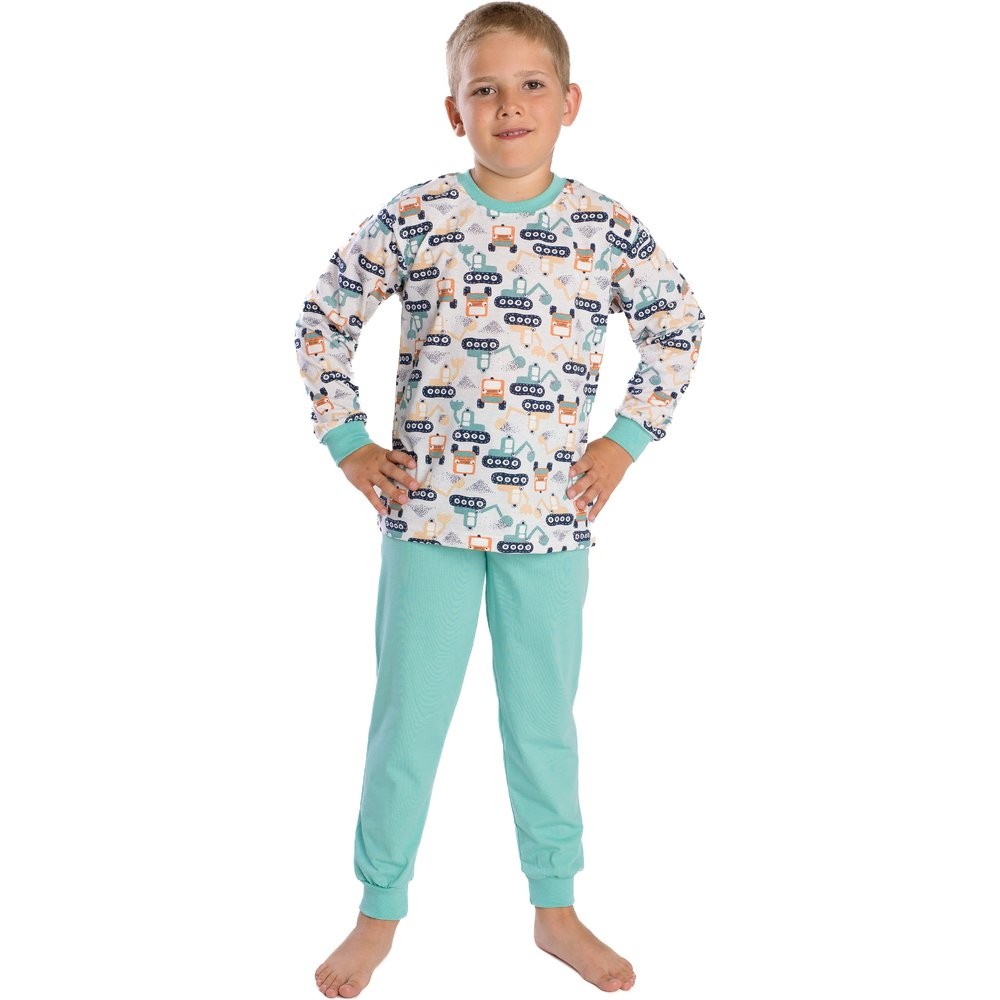 Gyerek pizsama Bettymode AUTÓK ÉS GÉPEK PASTEL hosszú ujjú