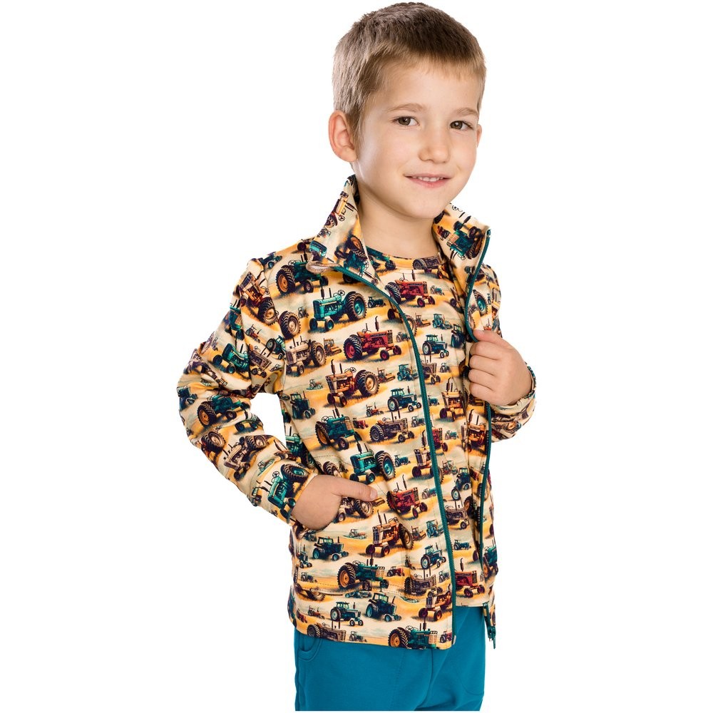 Színes fiú pulóver TRAKTOR VETERÁN a Bettymode márkától remek kiegészítő a kis traktor- és kalandkedvelők ruhatárába.