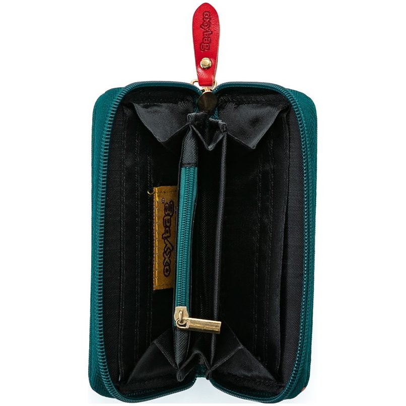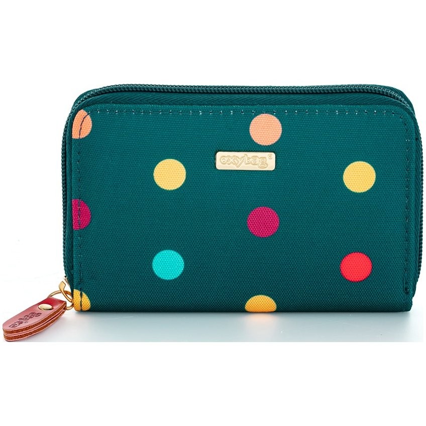 Kis női pénztárca pöttyös kivitelben. Belül 4 kisebb zseb a törzsvásárlói kártyáknak, 3 különálló rekesz és 1 zárható cipzáras zseb található a kis érméknek. Méretek: 15,5 x 10 x 2 cm