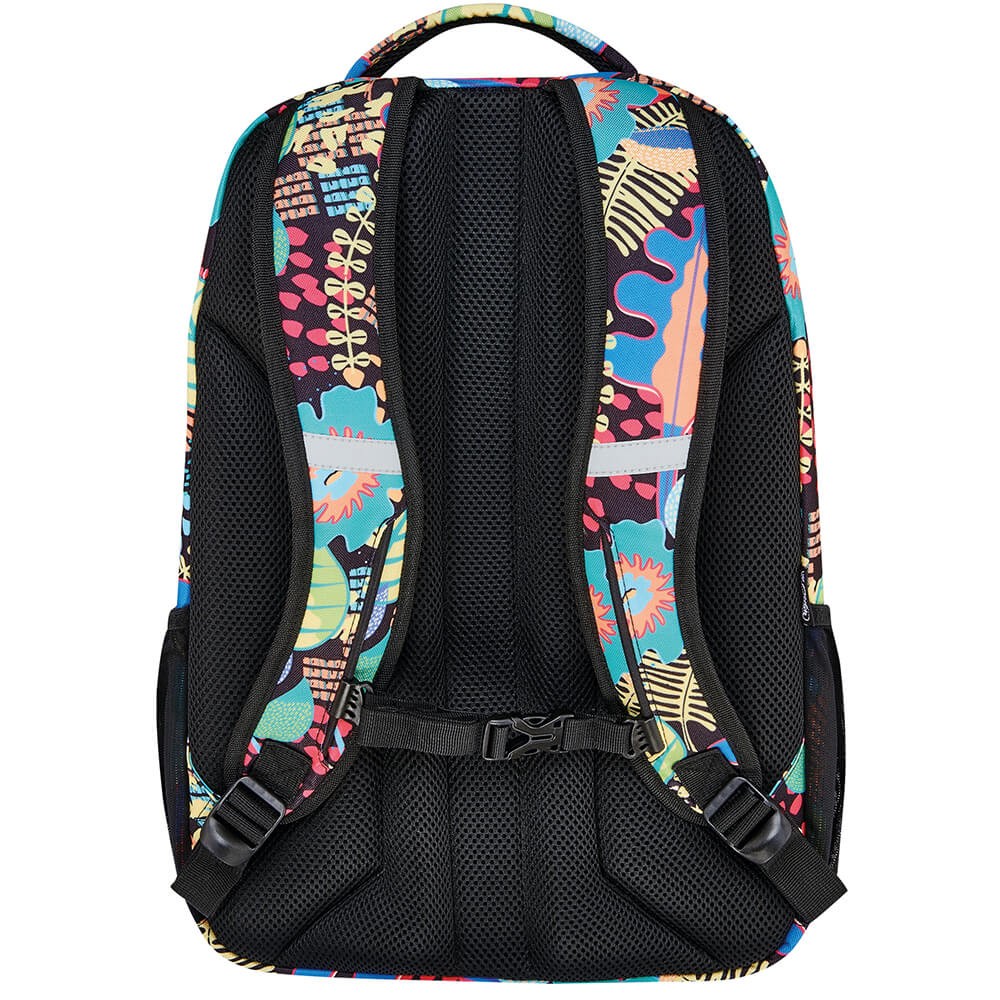 A be.freestyle Jungle kétrekeszes hátizsák középiskolás és egyetemi hallgatók számára alkalmas. Egy ingyenes tokot is csomagolunk a hátizsák mellé. Ergonomikus, légáteresztő és párnázott hátrésszel rendelkezik. Az állítható és anatómiai kialakítású vállpántok párnázzással vannak ellátva. A fényvisszaverő elemek a vállpántokon és a hátizsák elején találhatóak.