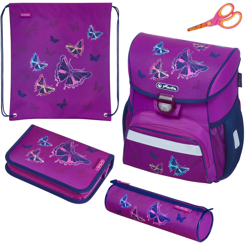Herlitz Loop iskolatáska Csillogó pillangó 4 darabos szett + olló és szállítás ingyen