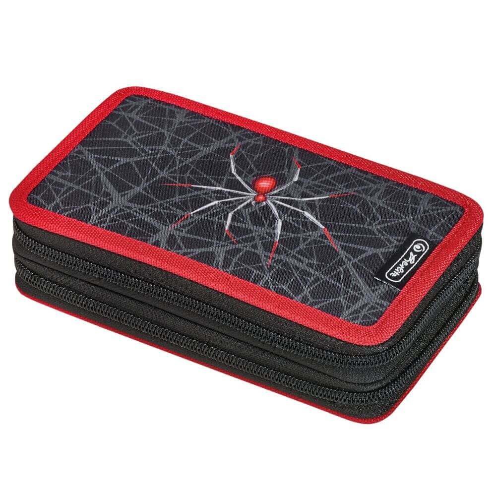 Ez a fiús két emeletes iskolai tolltartó pókos mintával Herlitz írószerekkel van felszerelve. Az első emeleten 2 ceruza, golyóstoll, háromszög, 16 cm -es vonalzó, radír és hegyező található. A második emeleten 8 filctoll és 8 színes ceruza található. A minőségi cipzárak nagy fém húzókkal rendelkeznek a könnyebb kezelés érdekében.Méret: 19 x 11 x 4,5 cmAnyag: poliészterGyártó: Herlitz