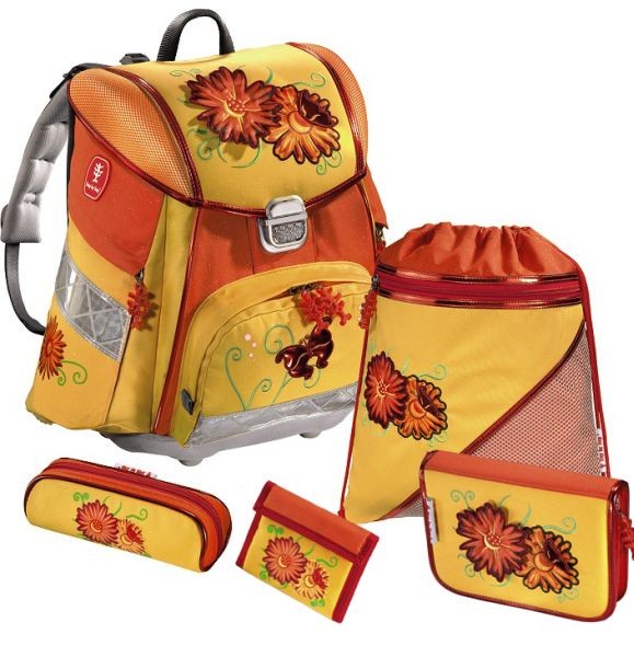 5 részes iskola hátizsák szett tartalma: 1-1 db azonos motívumú iskola-hátizsák, teljesen felszerelt tolltartó, hengeres ceruzatartó, tornazsák és pénztárca. Az iskolai táska erős alakú, anatómiailag formájú, párnázott hátfala és erős táska alja van. Alsó tagozatos iskolásoknak alkalmas.