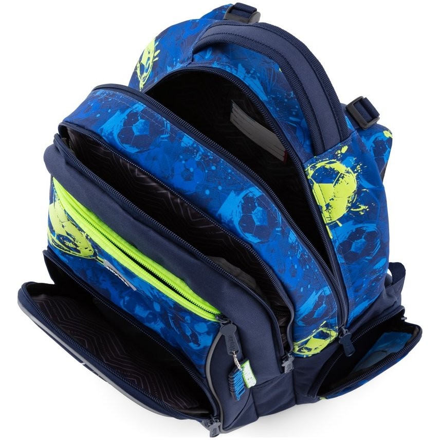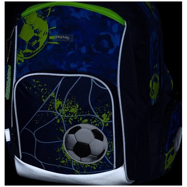 Az OXY GO sorozatú iskolai hátizsák egyszerűen magára vonzza a figyelmet. A dizájn minden iskolás gyereket magára vonz. A hátizsák tökéletes formája nemcsak az anatómiailag formált és légáteresztő hátrészt rejti, hanem a vállpántok állíthatóságát is a jobb kényelem és a kényelmesebb viselet érdekében. Ezenkívül a hátizsák további horgokkal van felszerelve a hosszú pántok rögzítéséhez. Két belső zseb elegendő helyet kínál tankönyveknek, füzeteknek és szabadidős eszközöknek. A masszív, vízálló alj megakadályozza mind a kívülről érkező szennyeződések bejutását, mind a befelé kiömlő dolgok kiszivárgását. Az oldalakon két kisebb zseb található, az egyik nyitott, a másik cipzáras. A hátizsák rengeteg különféle zsebet kínál, mind nagyokat, mind kicsiket. Könnyű, mégis elég nagy ahhoz, hogy minden olyan dolog elférjen benne, amit minden iskolás gyerek kéznél szeretne tartani. Gyermekei biztonságára is gondoltunk, ezért a hátizsák fényvisszaverő elemekkel van ellátva. A hátizsák ideális az első osztálytól az 1-3. osztályig, 125 cm magasságtól kezdődő gyermekek számára. A hátlap hossza 39 cm, űrtartalma 22 l, a hátizsák súlya 930 g, teherbírása pedig 8 kg.
