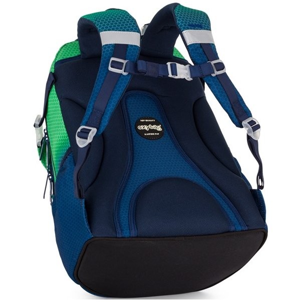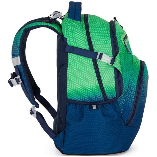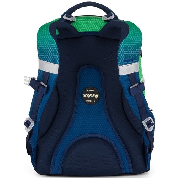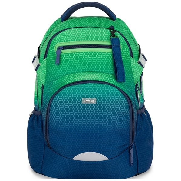Az OXY Ombre sorozatú iskolai hátizsák ideális iskolás gyerekek számára 3. osztálytól. A modern ombre stílusú dizájn első pillantásra magára vonzza a tekintetet. Az anatómiailag formázott hátlap, a párnázott vállpántok és az állítható mellkaspánt biztosítja, hogy minden iskolás háta olyan puha legyen, mint a pamut. A masszív alj megakadályozza, hogy az önállóan is használható hátizsák felboruljon. A hátizsák két tágas zsebbel rendelkezik az összes szükséges iskolai felszereléshez. Az oldalsó, rugalmas szalaggal ellátott zsebekben elfér egy kulacs, amely könnyen hozzáférhető, így kiegészítve minden iskolás gyermek ivási rutinját. Az elülső zsebben könnyen elrejthető egy kisebb uzsonna. Számos fényvisszaverő elem található. A hátizsák 136 cm magas gyermekek számára alkalmas. A hátlap hossza 43 cm, térfogata 28 l, a hátizsák súlya 960 g, teherbírása pedig 8 kg.