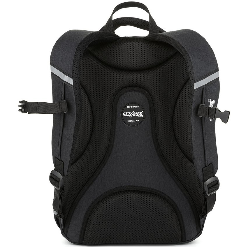 Az Oxy Scooler egy háromrekeszes hátizsák diákoknak és diákoknak, oldalsó palackzsebbel, rendezővel, belső kis zsebbel, valamint laptop zsebbel 15 hüvelykig. Az állítható vállpántok és a mellkaspánt az anatómiailag kialakított légáteresztő hátrendszerrel együtt maximális kényelmet biztosítanak. Természetesen vannak fényvisszaverő elemek is. Méretek: 45 x 30 x 16 cm Térfogat: 23 l Terhelhetőség: 8 kg Kis súly: ? 910 g
