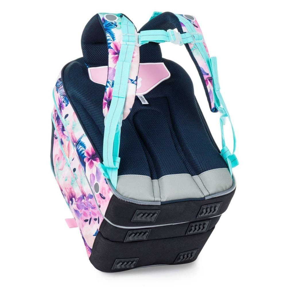 A hátizsák ergonomikusan formázott háttal és puhán párnázott vállpántokkal rendelkezik, amelyek könnyen a gyermek testalkatához igazíthatók. A magasságban állítható mellkasi csatnak köszönhetően a táska stabilan a háton marad, és mozgás közben sem csúszik le. A belső tér több rekeszre van osztva a tanszerek egyszerű rendszerezése érdekében. A hátsó részbe ajánlott a nehezebb tankönyveket vagy füzetmappákat helyezni.